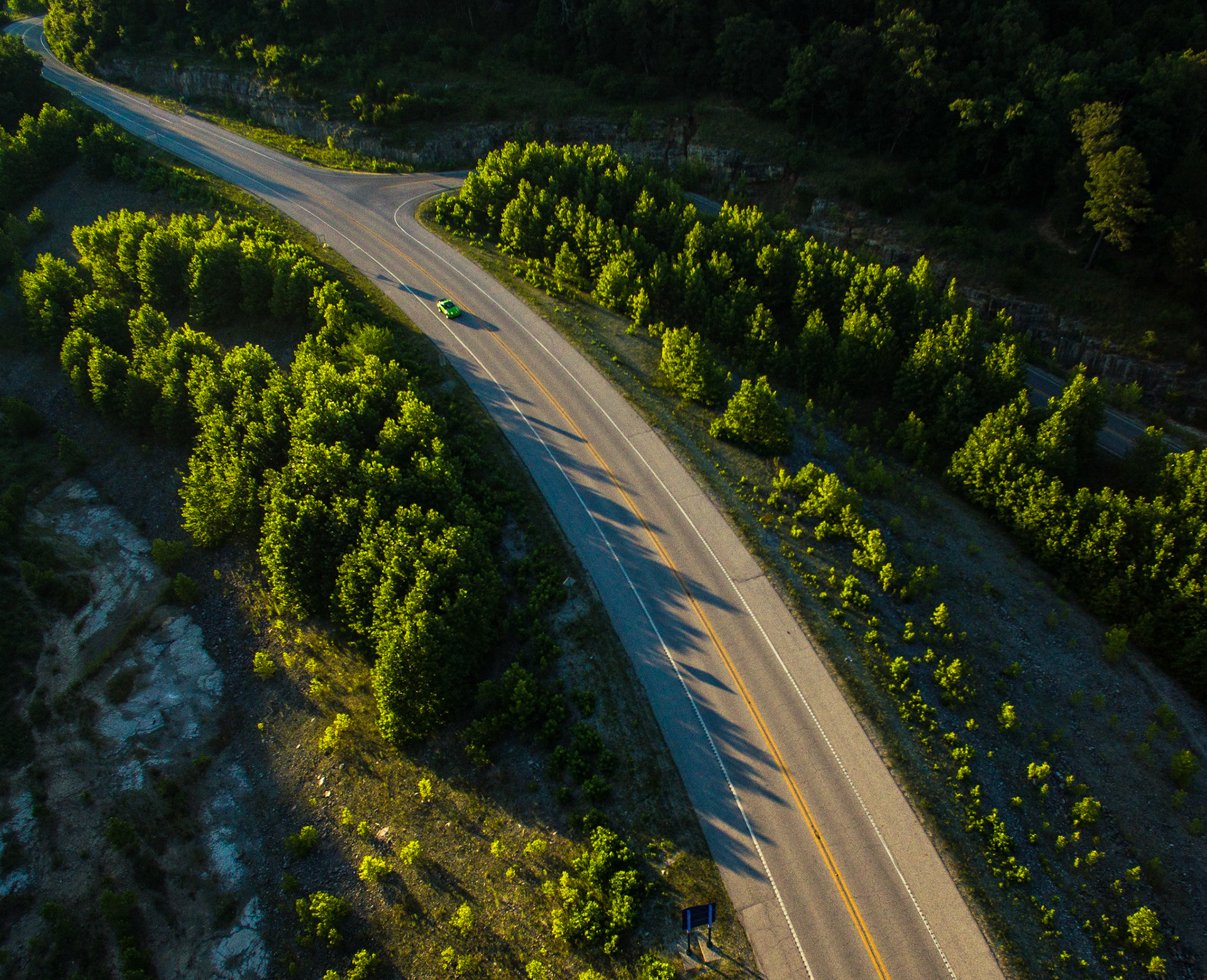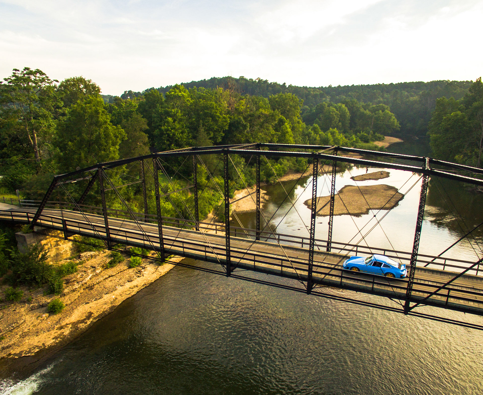 Photo project in the Arkansas Ozark's capturing images from the sky and on the ground of two custom Porsche 911's.